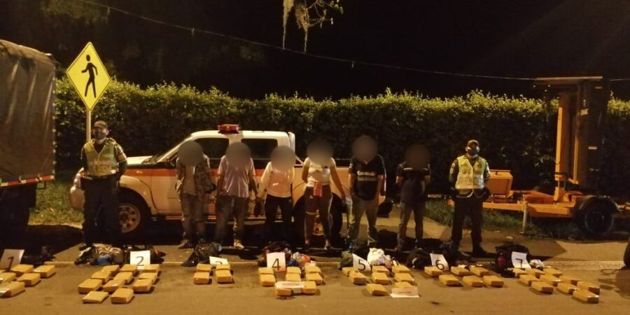 Seis personas fueron capturadas por el delito de trafico de estupefacientes en el sector de cerritos vía de ingreso a la ciudad de Pereira, al momento de verse descubiertos emprendieron la huida en medio de la vegetación.