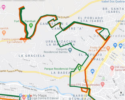 En el sentido Pereira-Dosquebradas a la altura de la Popa, la ruta ingresara por “J. Gallo”- SERVIENTREGA-Portal del Sol- Macarena-Limonar-Campestre B-Campestre A-Campestre BCampestre C-Centro Logístico.