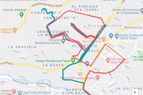 En el sentido Pereira-Dosquebradas a la altura de la Popa, la ruta ingresara por “J. Gallo”- Servientrega-Portal del Sol- Macarena-Limonar-Campestre B-Campestre A-Campestre D (quintas del campestre)