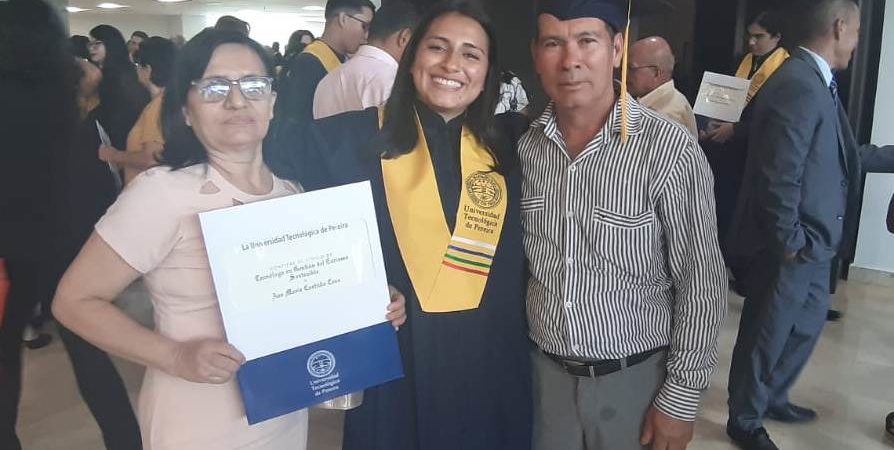 Por su parte Ana María Castaño Cruz, quien también obtuvo el título como Tecnóloga en Gestión del Turismo Sostenible, es la tercera graduada de este proyecto, que gracias a su génesis ha obtenido dos reconocimientos nacionales e internacionales, como lo fueron la Mención de Honor del Premio de Alta Gerencia de la Presidencia de la República de Colombia y el reconocimiento del Banco Interamericano de Desarrollo, por ser catalogado como uno de los 20 proyectos de América latina con gran impacto social.