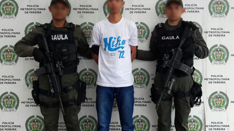 Frente a estos hechos la madre de la víctima decide formular denuncia ante el Gaula de la Policía; para lo cual se dispuso un operativo antiextorsión en vía pública del barrio La Macarena de Dosquebradas, lugar acordado por el victimario para recibir el dinero producto de la extorsión. Fue así como uniformados del grupo Grupo de Acción Unificada por la Libertad Personal “GAULA” capturan en flagrancia al joven de 19 años de edad, momentos en los que recibía el dinero.