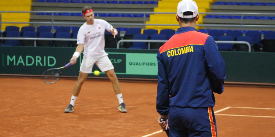 Los dirigidos por Alejandro Falla dividieron en dos turnos su primera práctica de la semana en el Palacio, que albergará una serie del torneo mundial por equipos por segundo año consecutivo. Alejandro González y Cristian Rodríguez fueron elegidos para saltar a la cancha en la primera sesión –que se extendió por más de dos horas-, y tan pronto finalizaron, atendieron a los micrófonos de la Federación Colombiana de Tenis.