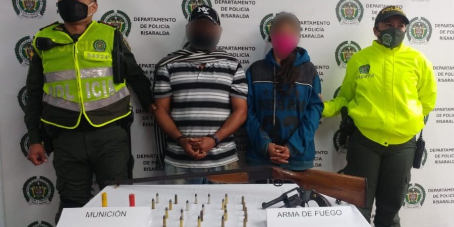 En las primeras horas de la mañana mediante diligencia de registro y allanamiento se logró la captura de una pareja de esposos quienes tenían en su poder dos armas de fuego y venían intimando a la población de la vereda la tigresa jurisdicción del municipio de Marsella.