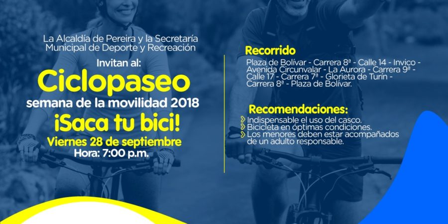 La Secretaría Municipal de Deporte y Recreación de Pereira realizará, con motivo de la Semana de la Movilidad, que se adelante actualmente en la ciudad, un ciclopaseo nocturno por las céntricas calles de Pereira.