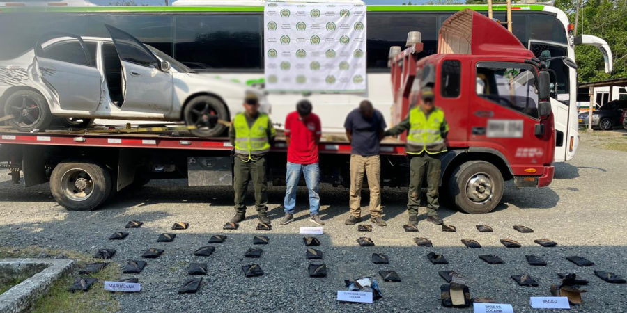 En esos instantes y gracias a la pericia de los uniformados, hallan ocultos en una caleta doble piso 21 kilos de marihuana, dos kilos de base de cocaína, un kilo de cocaína y 500 gramos de bazuco, los hoy capturados, sustancias y vehículos son dejados a disposición de la autoridad judicial correspondiente, en donde deberán responder por esta conducta punible.
