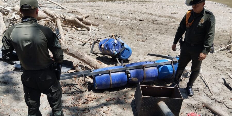 Durante la operación se ubicaron tres puntos de extracción del mineral y se destruyeron de forma controlada 05 dragas de infraestructura utilizada para la minería ilegal, de igual forma se incautaron 15 metros de manguera de seis pulgadas, 1 canaleta de lavado de fabricación artesanal, 8 metros de malla eslabonada y 1 motor de combustión.