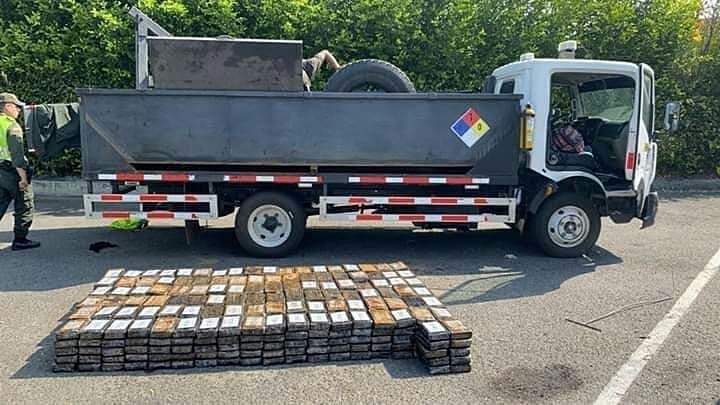 Se logra en las últimas horas la incautación de 550 kilos de clorhidrato de cocaína y la captura de 02 personas en la vía Andalucía – Cerritos km 53 sector Abejones jurisdicción del municipio de Obando.