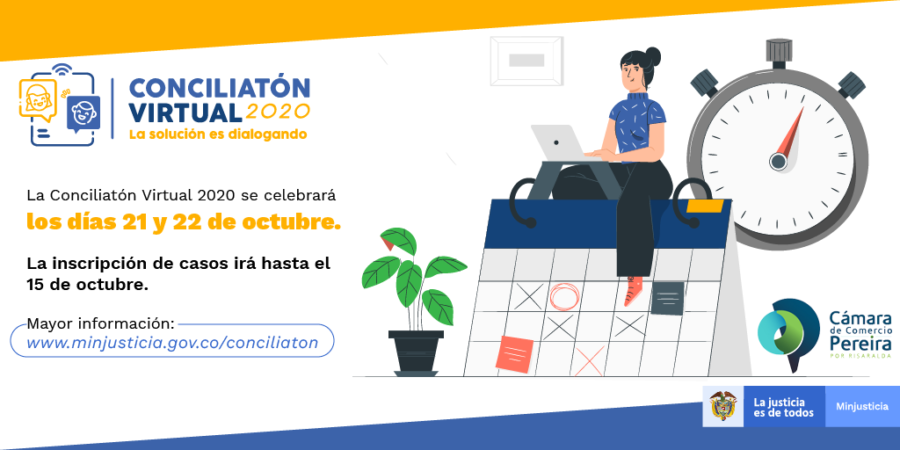 Es mejor la conciliación que el conflicto, por eso el Ministerio de Justicia y del Derecho y la Cámara de Comercio de Pereira invitan a los ciudadanos a la Conciliaton, un espacio para solucionar sus conflictos de diferentes índoles por medio del diálogo, buscando evitar las vías de hecho. Es una iniciativa donde se ofrecen servicios gratuitos de conciliación para personas de estratos 1, 2 y 3 y la fecha máxima para inscribirse es el 15 de octubre del 2020.