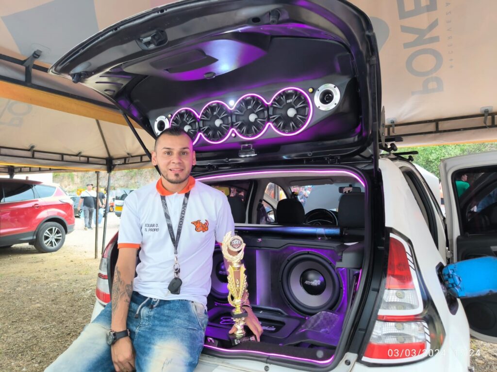 Y para cerrar cada día, los fanáticos del Car Audio, se reunieron en la competencia. En la categoría Mini 3, Faber Escobar en su ‘Stitch’, un Renault 4,