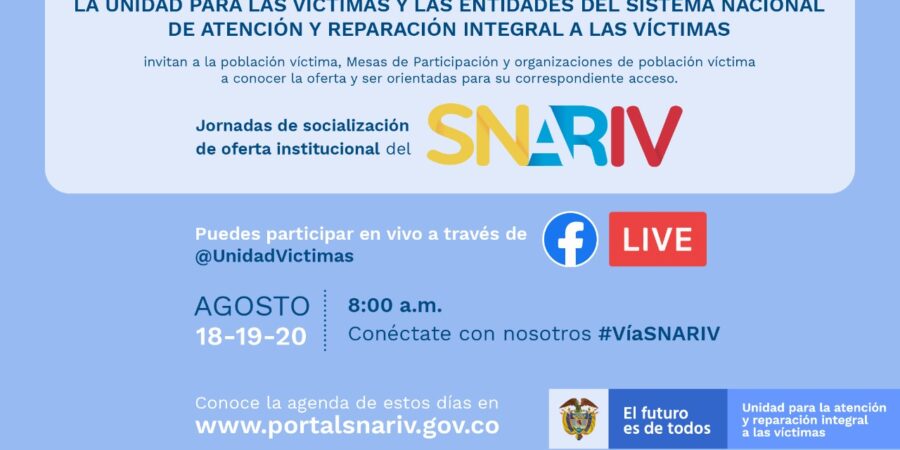 La jornada planteada para el martes, miércoles y jueves de la próxima semana se hará de manera virtual a través las redes sociales de la Unidad para las Víctimas: @unidadvictimas y contará con la participación de 15 entidades que tiene el objetivo de presentar la oferta social y guiar sobre qué requisitos deben cumplir para acceder.