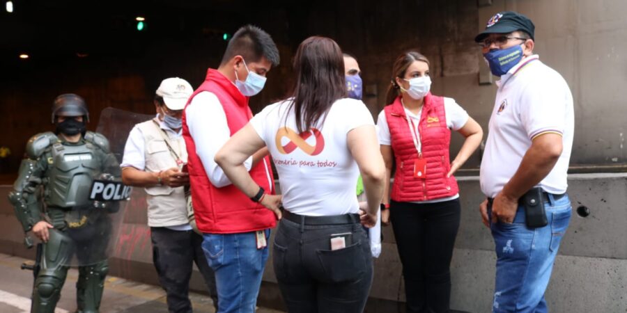 Es oportuno referir, que, en la misma línea, en desarrollo de las marchas se generaron dos procesos de mediación, consensuados, entre los representantes de las organizaciones a cargo de las jornadas y la Fuerza Pública, para garantizar su adecuado desarrollo.