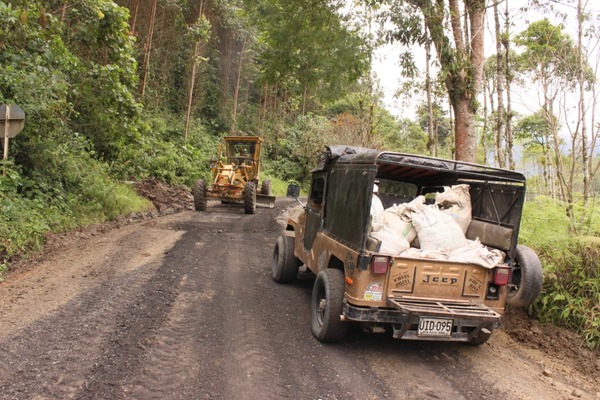 - En la vía Santa Rosa de Cabal – La Laguna (El Placer) se están mejorando las condiciones viales en 20,95 km, con dos volquetas y un vibro compactador.