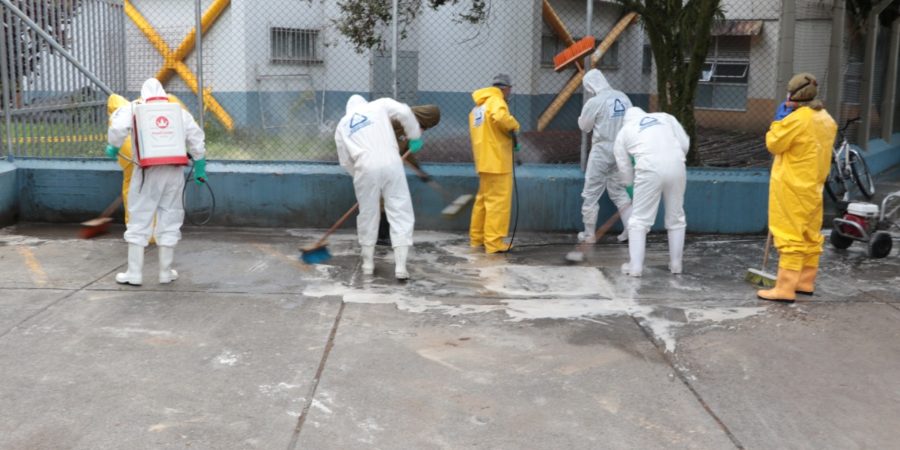 Adicionalmente Serviciudad determinó un área de trabajo de 4.400 mt2 semanales, las cuales serán lavadas y desinfectadas durante un mes, para un total de 17.600 mt2.