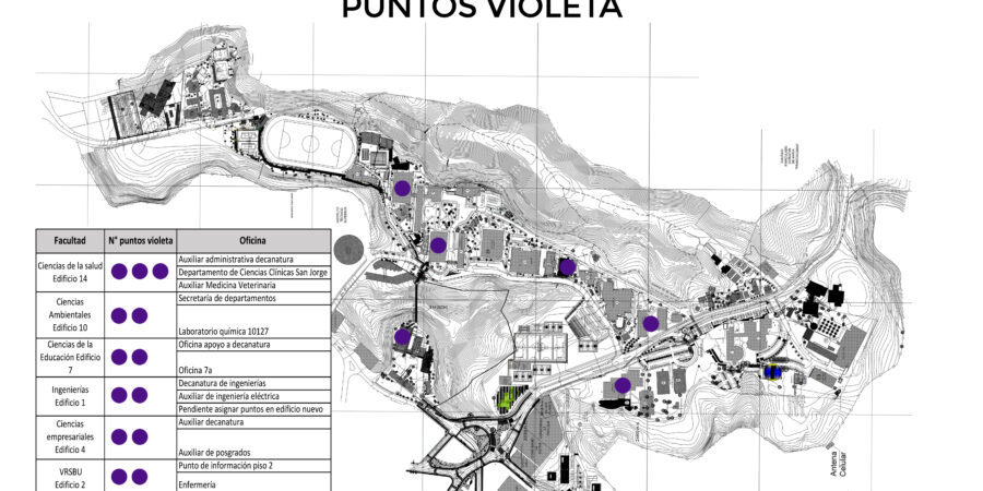 Pablo César Tabares, coordinador del área de salud integral, quien junto a su equipo de trabajo se ha encargado desde la VRSBU de liderar la estrategia de Puntos Violeta, explicó que, “estos lugares físicos ubicados en el Campus, al cual las personas pueden acercarse para hacer las respectivas denuncias de situaciones de violencia y discriminación por condiciones de género. Así mismo para obtener información para tener un fácil ingreso a una ruta de atención. Los Puntos están ubicados en cada uno de los edificios de las facultades, de hecho hay dos o tres Puntos Violeta en cada facultad, adicionalmente en la oficina de Seguridad y Salud en el Trabajo y en la Vicerrectoría de Responsabilidad Social y Bienestar Universitario”.